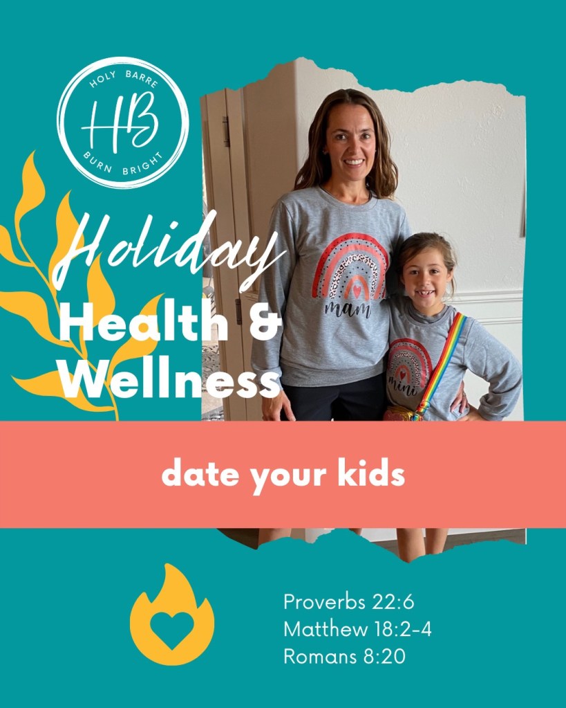 Let’s make some time to date your kiddo. Put the phones away, and connect with each of your kids during this holiday season. Maybe you schedule actual dates or maybe it’s more organic during times you’re home together. Our kids have lots on their hearts and minds too during this season . . . let’s not miss it! It’ll be valuable to everyone’s health and wellness!