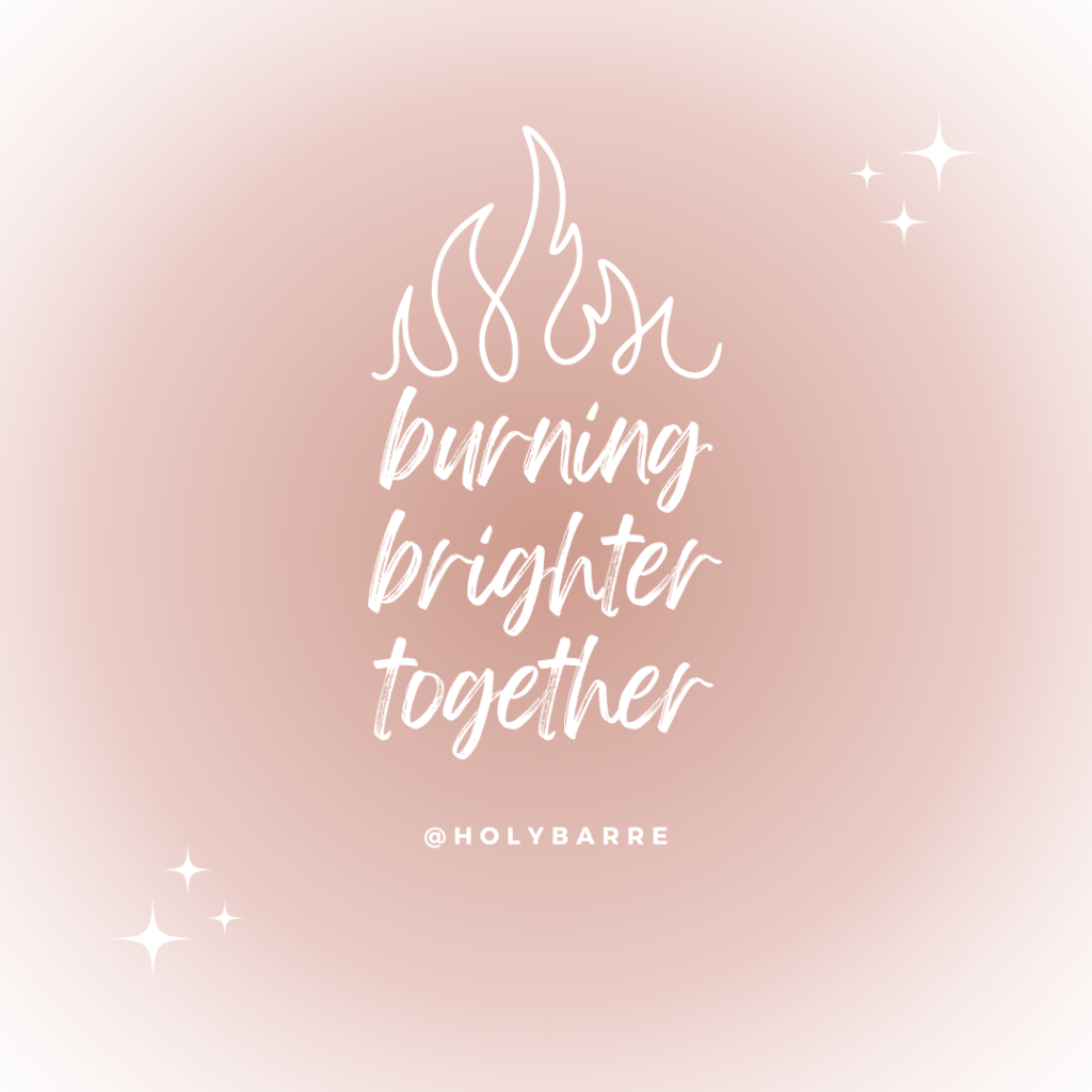 There have been plenty of seasons of weakness and pain when I needed those around me to fan my flame. And plenty of times when I can think back and realize that if it wasn’t for biblical community, who knows where I’d be. My faith is brighter because my friends burn bright. My marriage is brighter because my husband and I choose to burn bright. Holy Barre is brighter because it’s full of women desiring to burn bright, better together. Because the joy of the Lord is our strength!