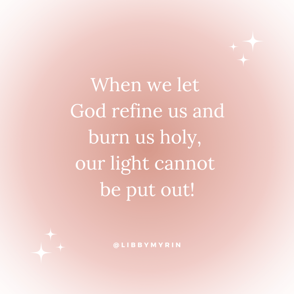 Several years later and several struggles later, the Lord ignited a fire in my soul when He lovingly revealed this truth to me, ‘stop shining in your own effort. Let me burn bright within you.’