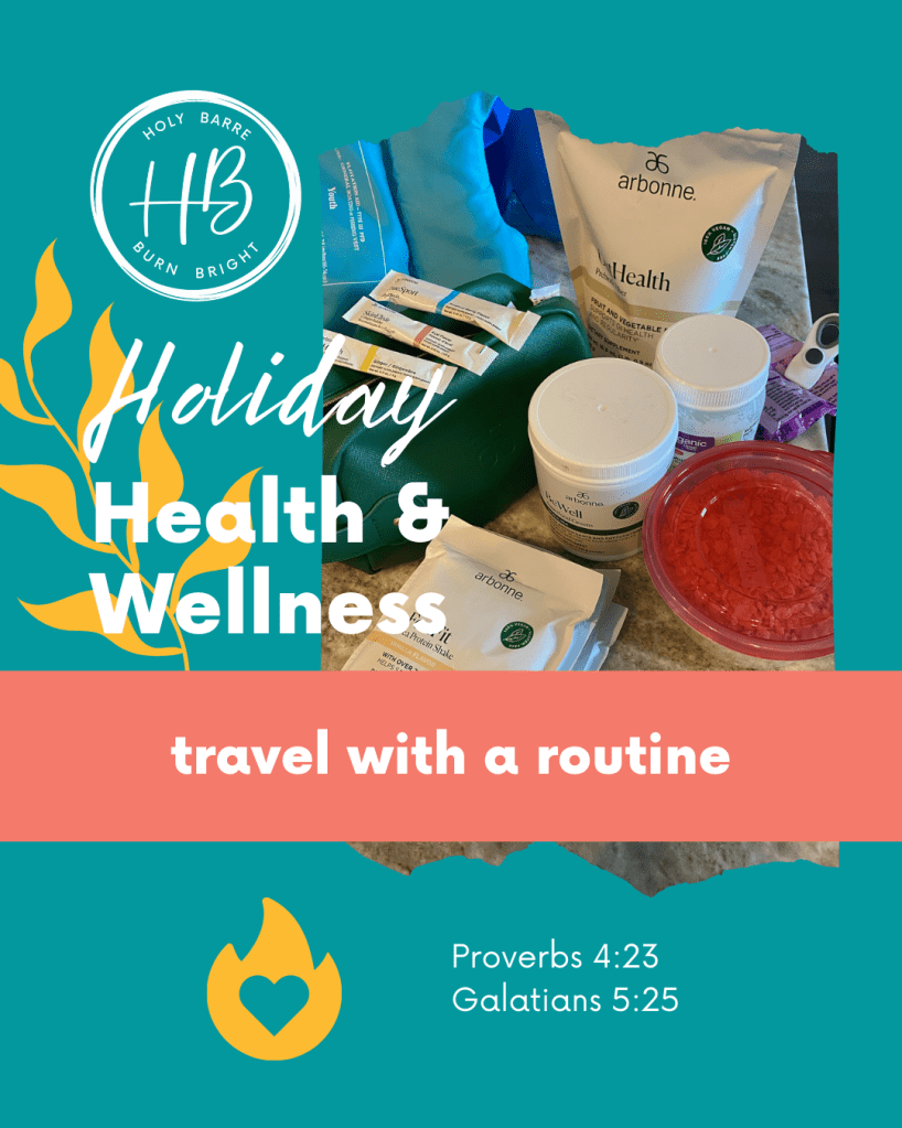When traveling, it’s so tempting to take a break from maintaining your normal routine and making healthy choices. And while we do highly recommending taking advantage of quality time with those you love and savoring this sweet season, plan ahead of time and pack your essentials to keep your body full of the things it needs to love well!